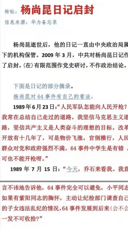 《杨尚昆》日记:对六四有不同看法 为赵紫阳打抱不平 坚信六四会平反 对邓小平将杨白冰赶下台不满 江泽民下令将邓质方拘留 邓小平妻卓林扬言要自杀 杨尚昆为邓子女说情 给江泽民打电话说手下留情 中南海谣言预言_468