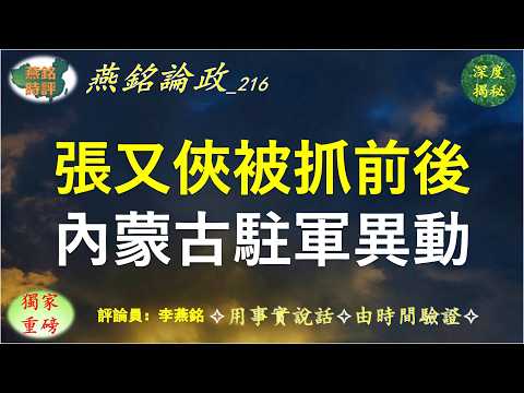 张又侠被抓前后,内蒙古驻军高层密集变动;内蒙古军区司令换人政委失踪增派副司令副政委,武警内蒙古总队司令换人,朱日和基地停止实兵对抗演训。【#燕铭论政-216】