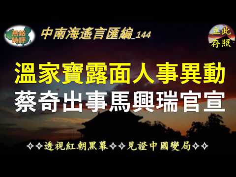 温家宝人马将任外交部党委书记 齐家人齐玉被拿下 蔡奇涉胡衡华案老婆被约谈 马兴瑞三天后官宣 习追杀李克强女高官罪名罕见 刘鹤上书习 王岐山马兴瑞大秘案关联 又一上将被抓 上海统战高官投案。【#中南海遥言汇编-144】